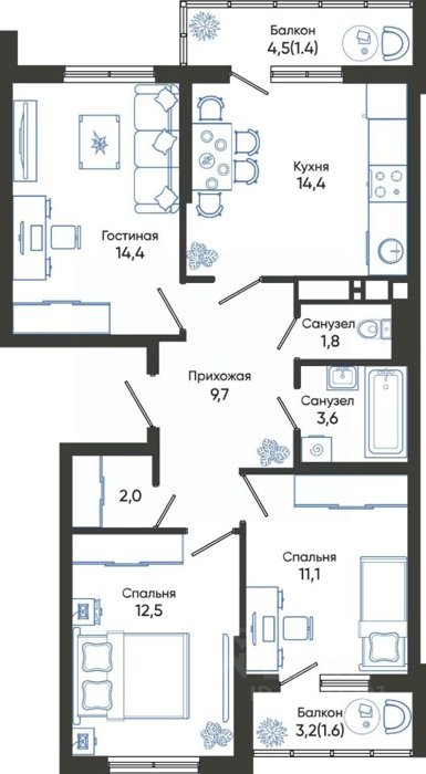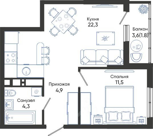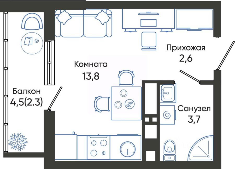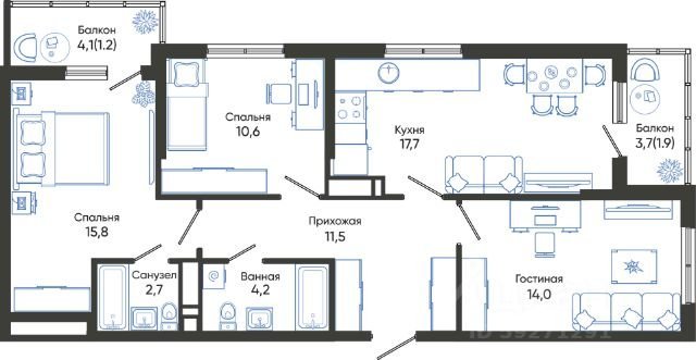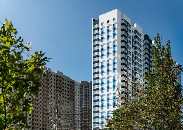П-образное здание высотой 23 этажа кажется легким и воздушным благодаря современным фасадам и стеклянным конструкциям. Планировки удивляют разнообразными решениями: от просторных студий до трехкомнатных квартир с мастер-спальнями. Широкие лоджии и балконы создают дополнительное пространство для отдыха.