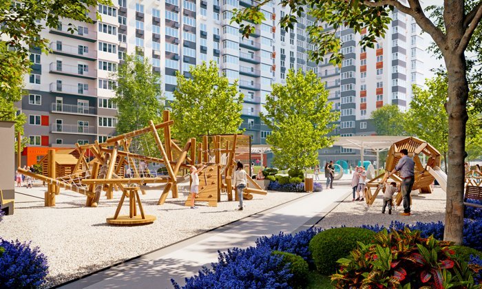 Данная общественная система имеет широкий спектр активности на открытом воздухе. Здесь есть пространство для развлечений и взрослых, и детей с учетом образа жизни. Двор закрыт от посторонних, на территории ведётся круглосуточное видеонаблюдение.