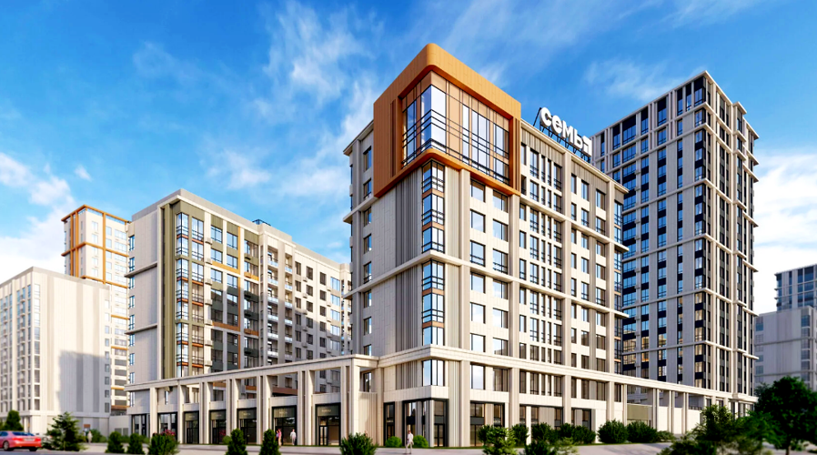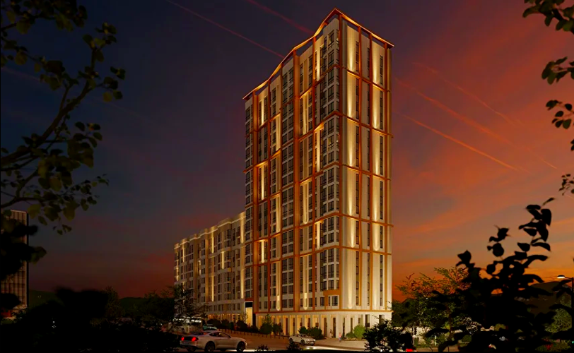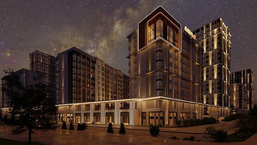 В вечернее время архитектурная подсветка выделяет ЖК среди других, подчеркивая особенную атмосферу. Фасады выполнены мз высококачественных материалов, которые не только придают эстетичный вид, но и обеспечивают тепло и звукоизоляцию