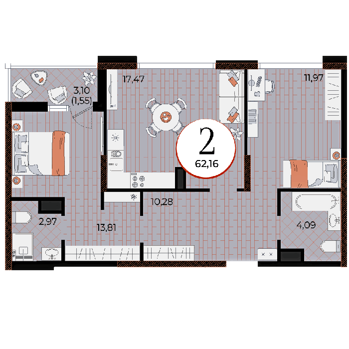ВЫбор свободных и эргономичных планировок на ваш вкус и бюджет.Эстетика начинается со свободы: интерьер — в ваших руках. Все детали продуманы: климат под контролем с первого дня проживания. Высокий класс 33+ напольного покрытия.
