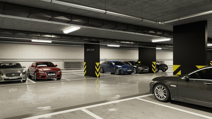 Подземный паркинг на 6 168 мест.Закрытый доступ, прямой выход на лифте, кладовые помещения. Машиноместо для электрокаров