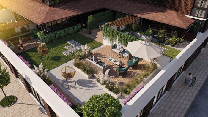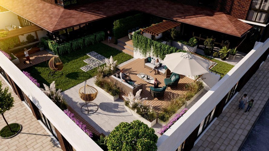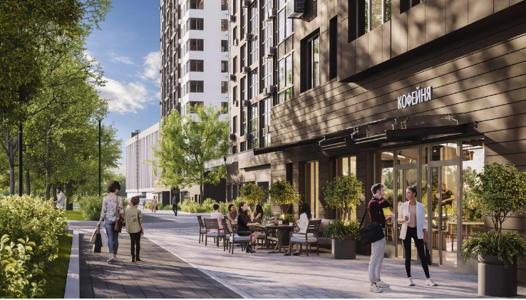 В закрытых от посторонних дворах не будет машин, зато будет всесезонное озеленение с геопластикой.Высадим особые виды растений, которые сохраняют приятный облик даже зимой.Также в проекте появится пешеходный бульвар с фонтаном и удобными скамейками — идеальное пространство для семейных прогулок, утренних пробежек или вечерних посиделок с друзьями.