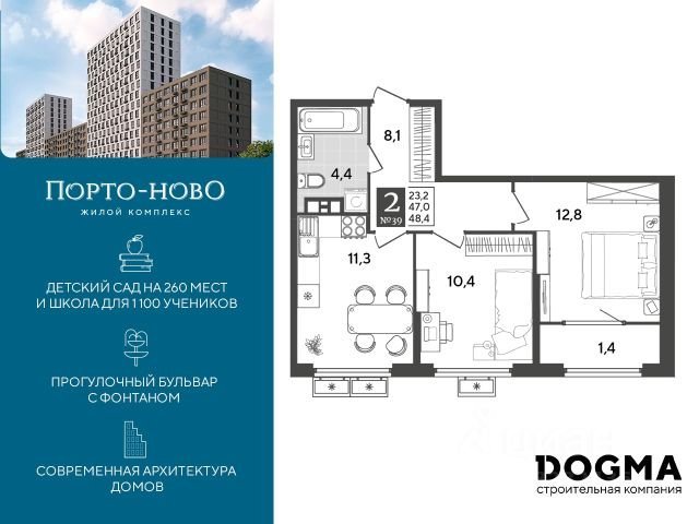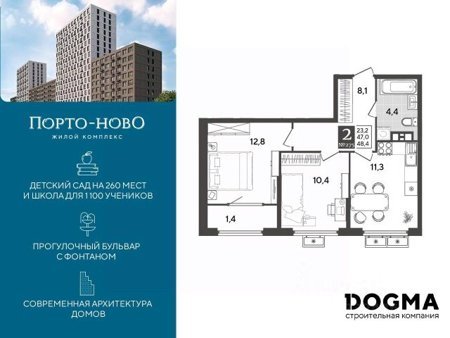 Площадь от 48.4 м2