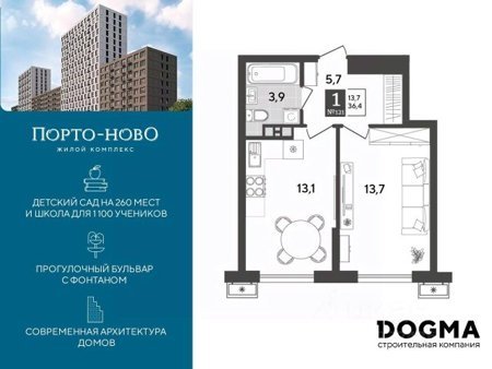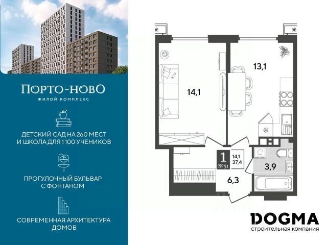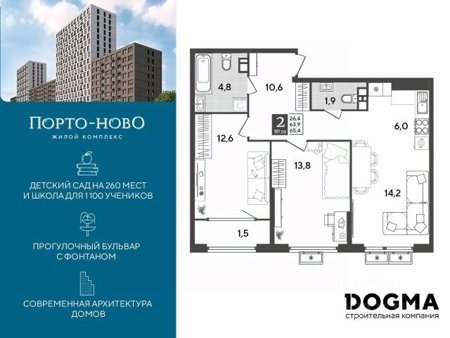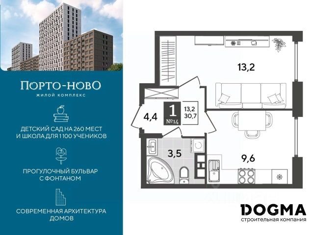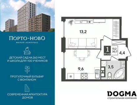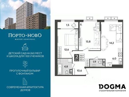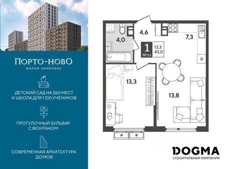 Детский сад и школа в нескольких минутах от дома, физкультурно-оздоровительный комплекс, спортхаб и детские площадки, зона для гриля, прогулочный бульвар с фонтаном и торговая аллея. Квартиры с отделкой и видовые квартиры с террасами на вторых и десятых этажах домов