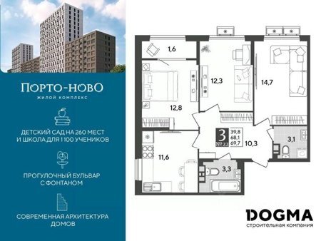 Площадь от 69.7 м2