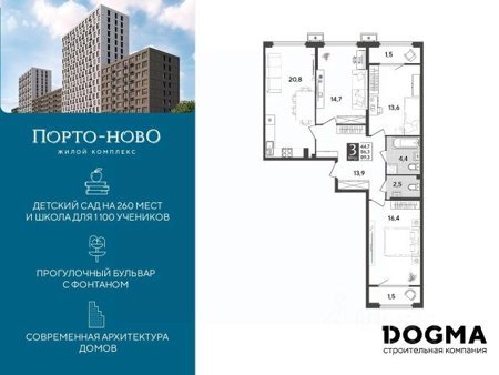 Площадь от 19.8 м2