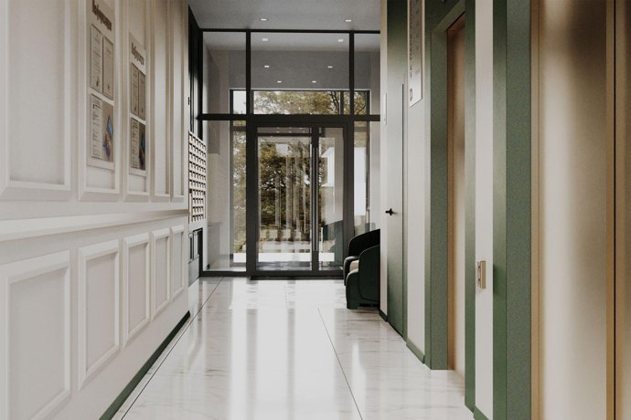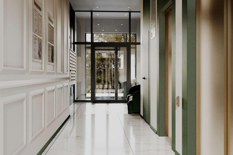Для удобства жильцов в ЖК предусмотрены сквозные подъезды, входные группы на уровне земли и места для хранения колясок в вестибюлях.